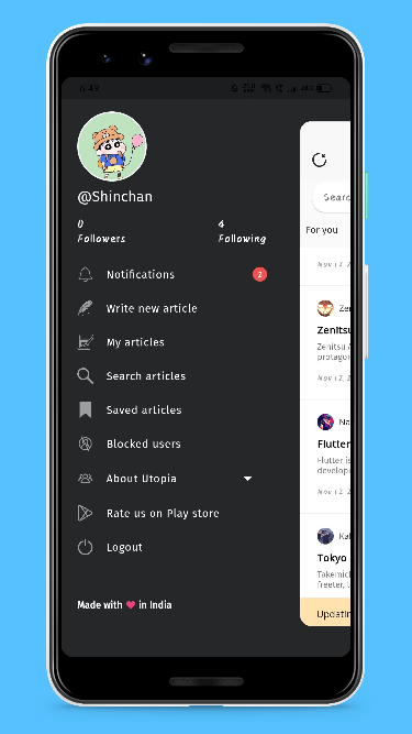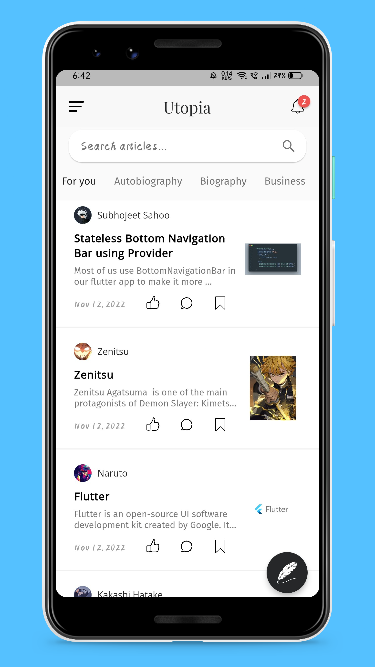 A blogging application where users can publish their blogs and articles and can connect with other authors, developed using Flutter and Firebase.